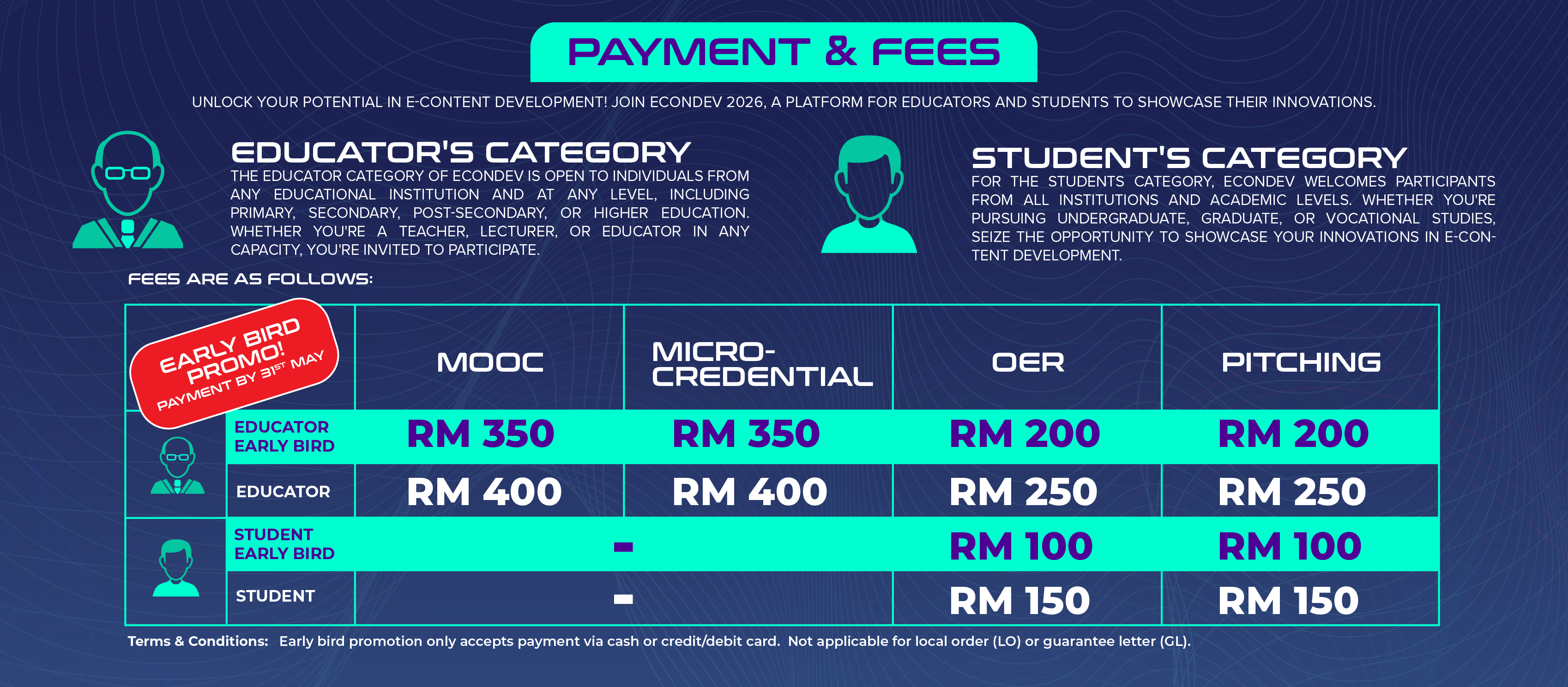 - No Refund Policy E-CONDEV operates under a strict no-refund policy. Once registration fees are paid, they are non-refundable under any circumstances. This policy applies to all participants, regardless of the reason for withdrawal or non-participation.